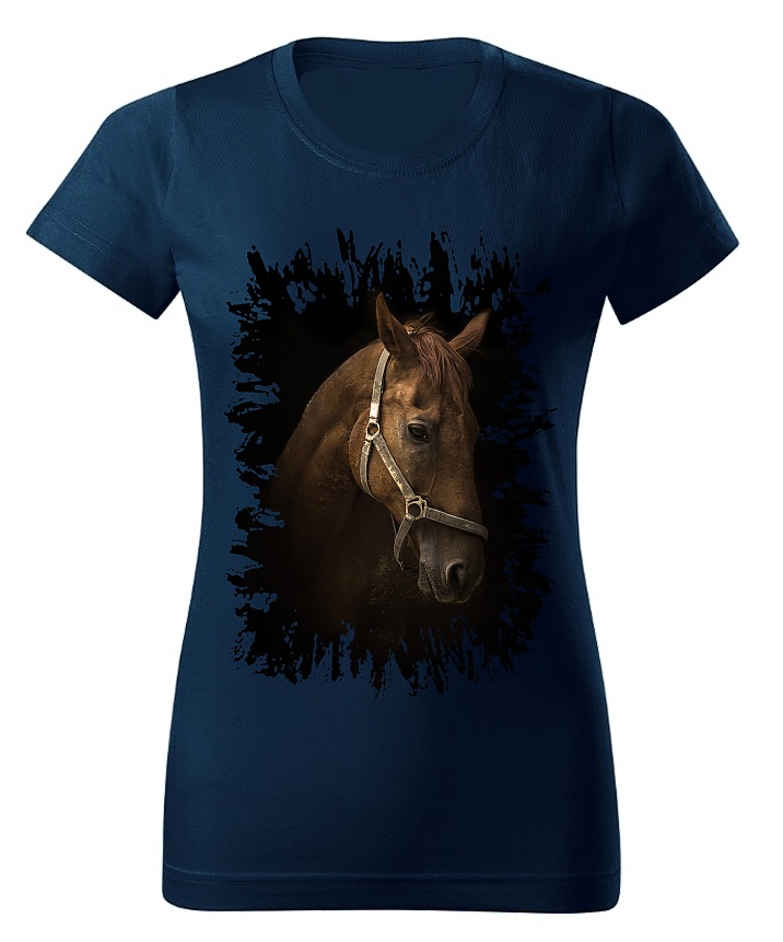 Moon River Dámské tričko s koněm č.02 Navy modré M