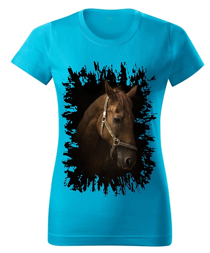 Moon River Dámské tričko s koněm č.02 Tyrkysové XL