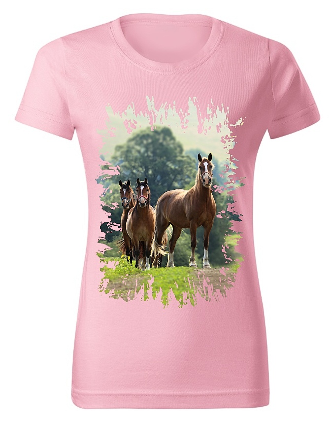 Moon River Dámské tričko s koněm č.03 Světle růžové XS