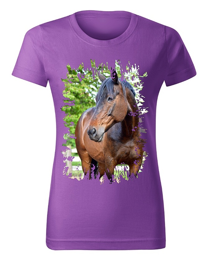 Moon River Dámské tričko s koněm č.04 Fialové M