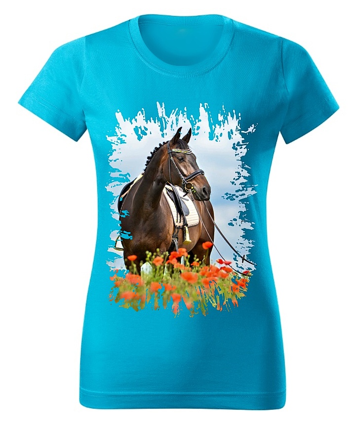 Moon River Dámské tričko s koněm č.08 Tyrkysové L