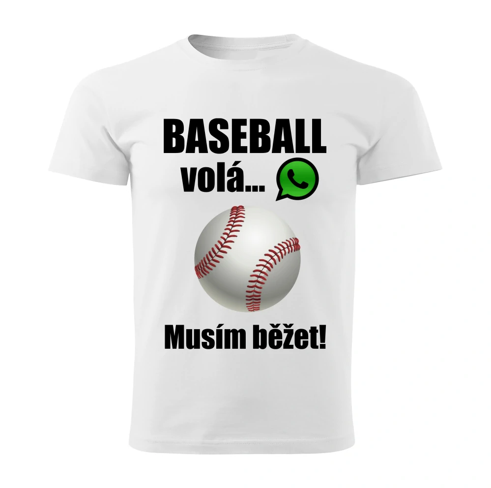 Dětské tričko Baseball volá musím běžet bílé 122Skladem 2 ks349 Kč/ ks288 Kč bez DPH