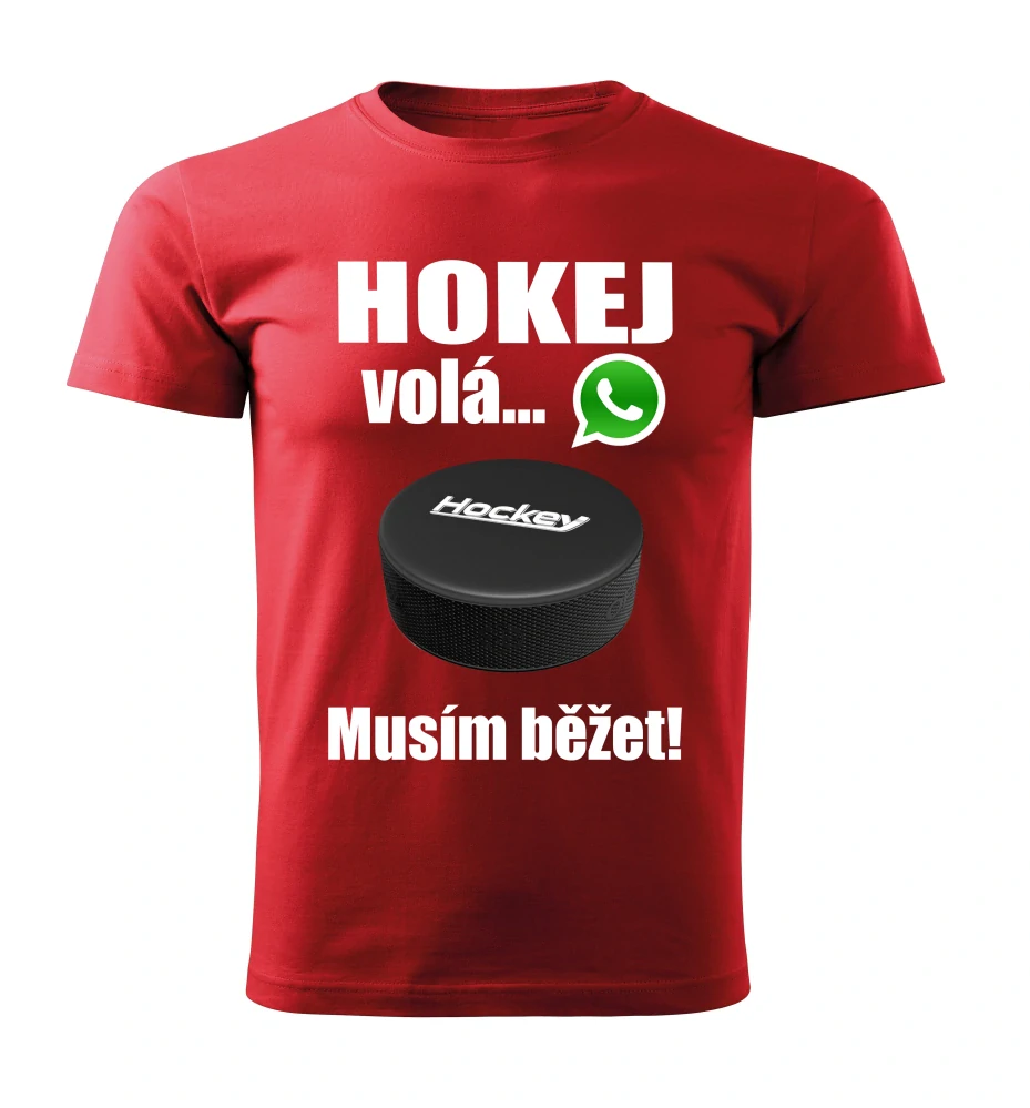 Dětské tričko Hokej volá musím běžet červené 146Skladem 2 ks349 Kč/ ks288 Kč bez DPH