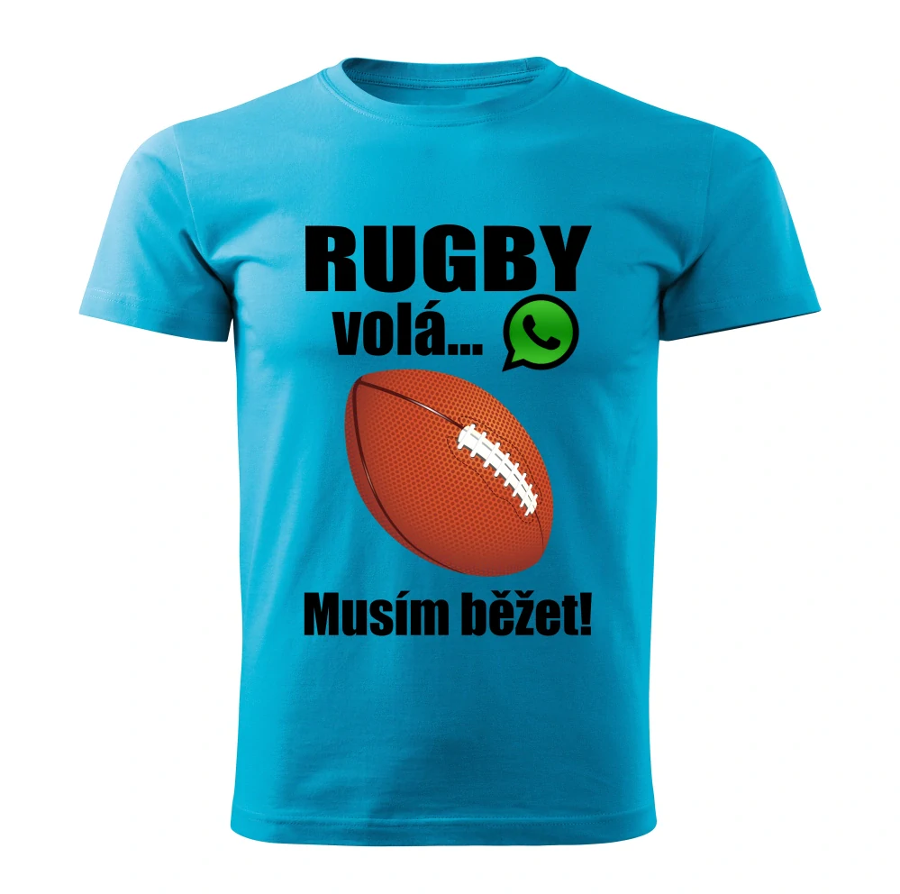 Dětské tričko Rugby volá musím běžet tyrkysové 122