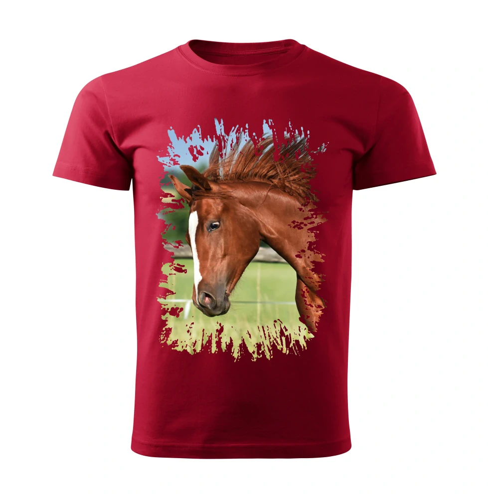 Dětské tričko s koněm koňská hlava vzor 452 červené 146