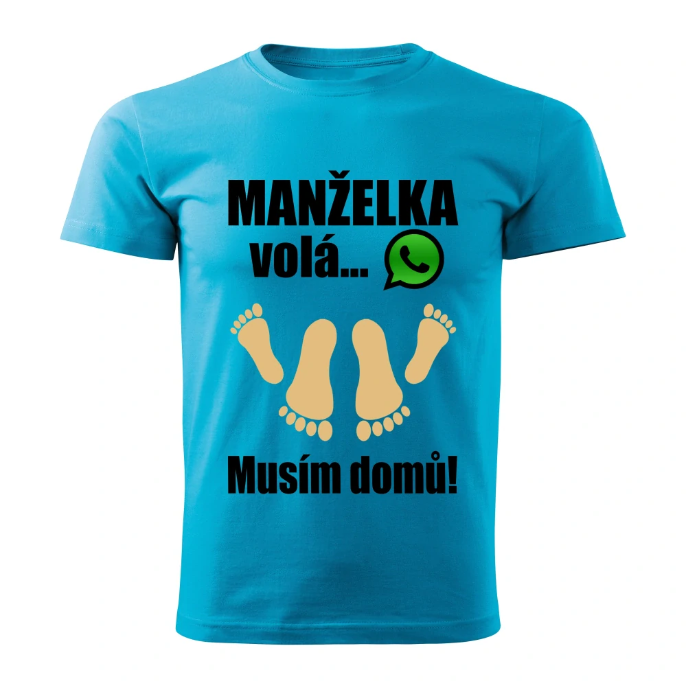 Pánské tričko Manželka volá musím domů tyrkysovéSkladem 16 ks349 Kč/ ks288 Kč bez DPH
