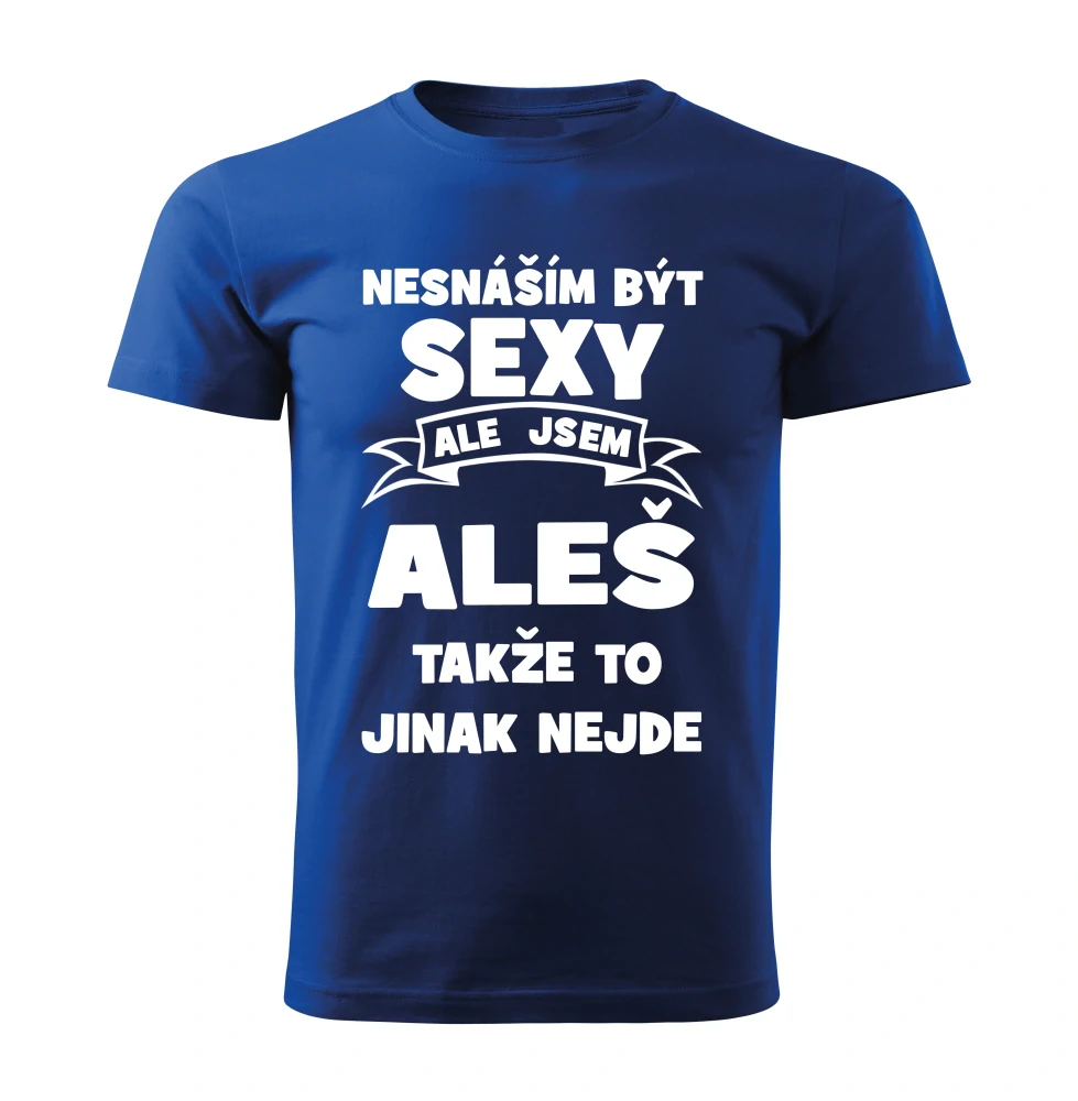 Pánské tričko Nesnáším být SEXY ale jsem ALEŠ takže to jinak nejde modré MSkladem 2 ks349 Kč/ ks288 Kč bez DPH