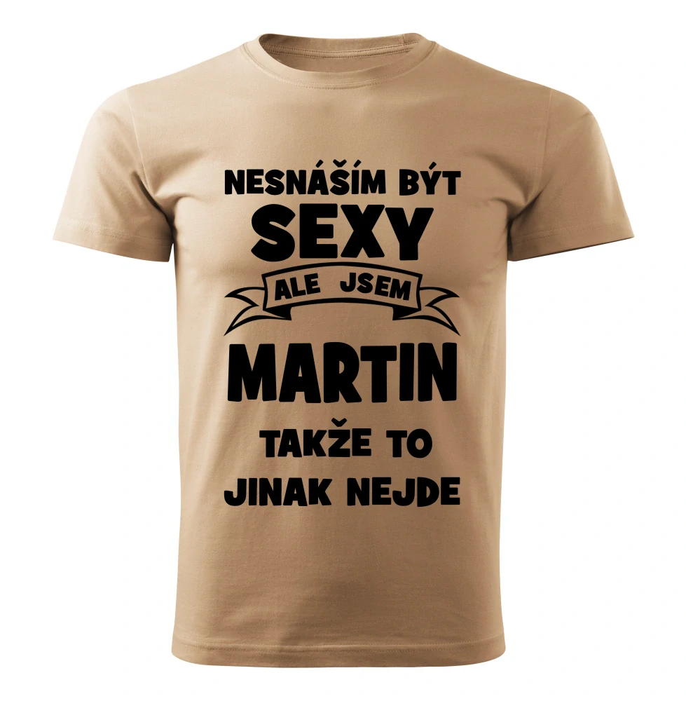 Pánské tričko Nesnáším být SEXY ale jsem MARTIN takže to jinak nejde béžové LSkladem 2 ks349 Kč/ ks288 Kč bez DPH