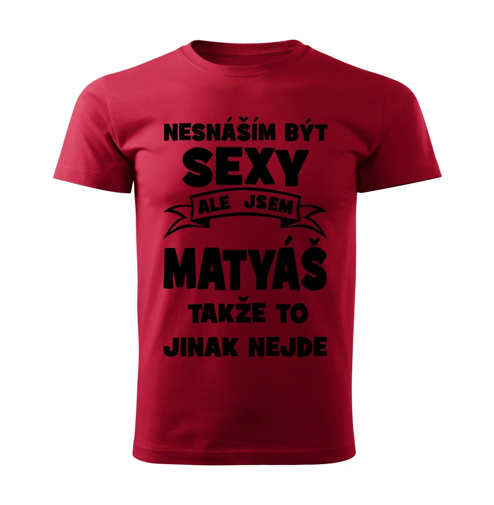 Pánské tričko Nesnáším být SEXY ale jsem MATYÁŠ takže to jinak nejde červené SSkladem 2 ks349 Kč/ ks288 Kč bez DPH