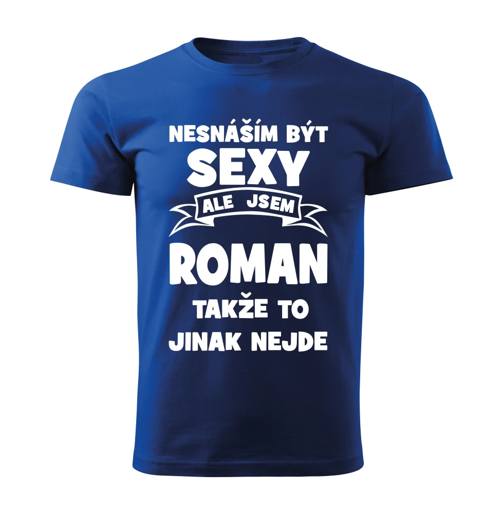 Pánské tričko Nesnáším být SEXY ale jsem ROMAN takže to jinak nejde modré 5XL